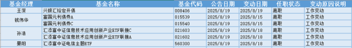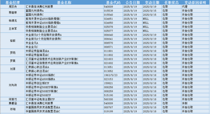 根据巨灵统计的数据显示股牛网,近30天(7.20-8.19)共有492只基金产品的基金经理发生离职变动。其中今天(8.19)有6只基金产品发布基金经理离职公告,从变动原因上来看,有4位基金经理是由于工作变动而从管理的6只基金产品中离职。